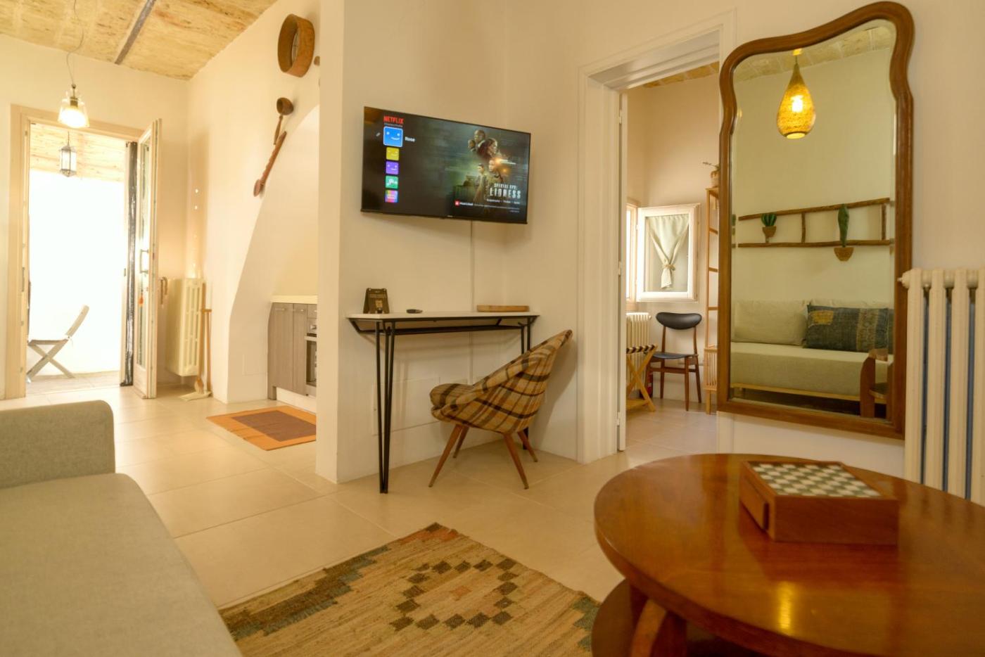 Questo appartamento con aria condizionata comprende 1 camera da letto, un soggiorno, una cucina con utensili, frigorifero e macchina da caffè, e 1 bagno con bidet e doccia. Presso questo appartamento troverete asciugamani e lenzuola in dotazione.